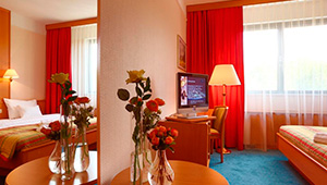 К услугам гостей 168 современных номеров, в т.ч. категории Люкс. В каждом номере система индивидуального климат-контроля, телевидение со спутниковыми каналами, высокоскоростной интернет, минибар. Для деловых и торжественных мероприятий в отеле предусмотрены 5 залов площадью от 30 до 170 кв. м. В каждом зале индивидуальный климат-контроль, естественное освещение, регулируемое светонепроницаемыми шторами, беспроводной интернет и современная демонстрационная техника.